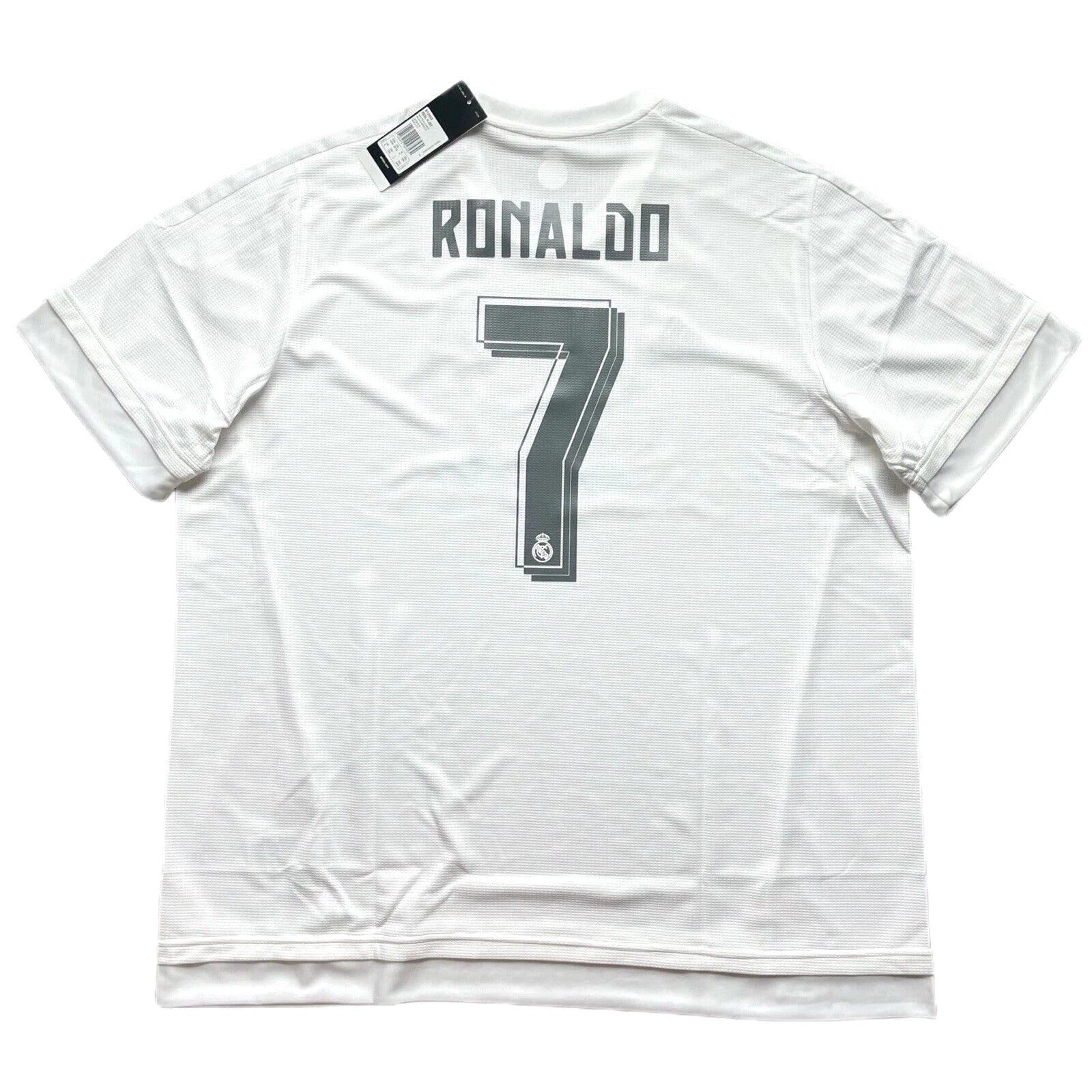 The product is an Adidas short sleeve jersey featuring the number 7 and the name "Ronaldo" on the back. It represents Real Madrid and is associated with the 2015/16 season. This jersey is designed for male fans of soccer, particularly those who support Cristiano Ronaldo and Real Madrid.