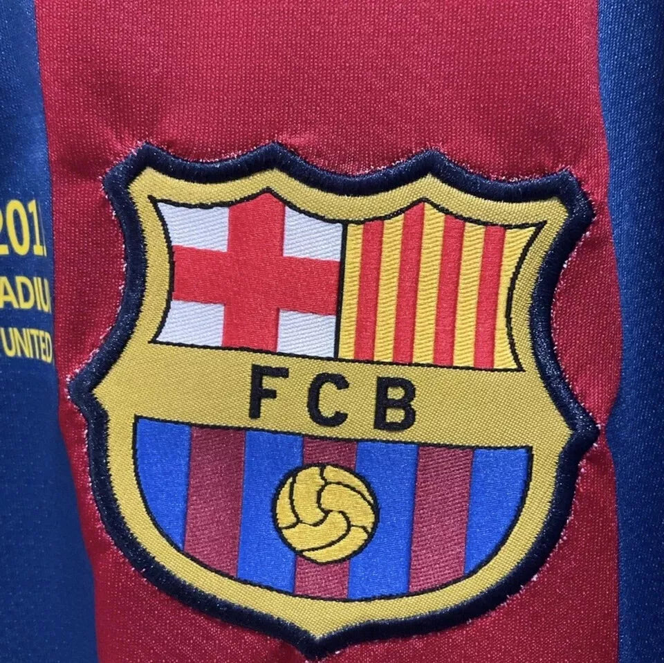 The Barcelona Messi Men's UCL Final 2011 Jersey in all size features Lionel Messi's name and is designed for fans of FC Barcelona. The multi-color jersey is specifically tailored for men's fit and is ideal for showcasing support for the team during soccer matches.